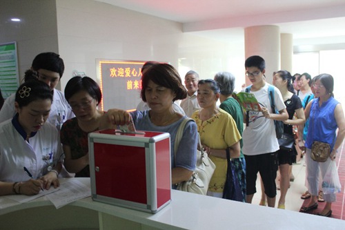 爱心体检包含血常规、尿常规、血清ALT,血脂、肾功能、空腹血糖、心电图、上腹部彩超等项目,参加体检的120名人士全部由参与《阳光八点半》节目的热心听众所选出。活动受到爱心人士的普遍好评。王大爷作为爱心人士的一员,参加了本次的爱心体检活动。满怀激动的他赋诗一组表达对十七冶医院的谢意:“……爱心医院十七冶,低价为民作体检。所得善款送灾区,全额献出解苦难。七点始检六点到,不怕酷暑高温天。……医护人员齐上阵,亲切温柔面笑彦。……医院生存不容易,洪灾沉重肩上担。治病救人又救灾,科室上下齐动员。……医疗系统一面旗,迎风飘扬在民间。”