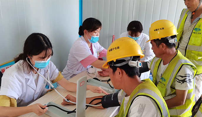为保障劳务工人的身体健康,切实做好工人的健康监护工作,8月20日,中国十七冶集团市政工程技术分公司承建的濉芜现代产业园双创孵化园建设项目邀请医务人员到项目工地,为150多名一线工人进行免费体检。