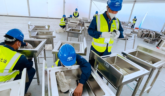 在细致研讨施工图纸并确定最佳施工方案后,16日晚11时,由住建分公司承担的方舱水电暖通、公共卫浴设施及水电安装施工开始进行大范围作业,各水电班组充分发挥专业优势,加快水电安装,协助其他工种加快推进。现场每名员工都在超负荷运转中。凌晨3时的大巴车上,大家抓紧宝贵的时间进行修整,凌晨5时许又相聚于施工现场,进行下一步任务……