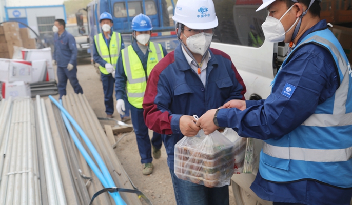 工程快速推进,现场人员消耗巨大,如何保障大家吃饭就压在了青年员工郁震的身上。为了让连轴转的工人们能在工作缝隙中吃上热腾腾的饭,他找来手推车和保温箱,负责每日运送大家的饭菜。对于劳动强度高的现场作业人员,只靠吃一盒固定的正餐完全吃不饱,郁震看到后记在了心里,整理出车上备用的泡面、火腿肠、牛奶、榨菜、午餐肉罐头等,一并分发给大家,确保工人们能吃得饱、吃得好。为维护好现场环境卫视,每次餐后第一时间,郁震都会将大家使用完后的一次性饭盒进行集中消毒处理,并把各类垃圾进行分类分装放在指定区域。忙碌间隙,郁震还将烧开的热水逐一灌入工人们的保暖瓶内,让工人们能在休息间隙实现“上班有热水喝,休息有热面吃”,让在气温反复无常的现场施工人员心理感觉十分温暖。无论是每日就餐、生活物资分发还是引导核酸检测,哪里都有他的身影。