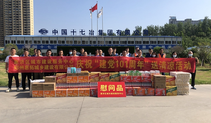 6月29日上午,为庆祝建党101周年,郑州市惠济区城市建设服务中心主任李林峰一行到十七冶承建的郑州大河社区安置房项目部开展“夏日送清凉”慰问活动。