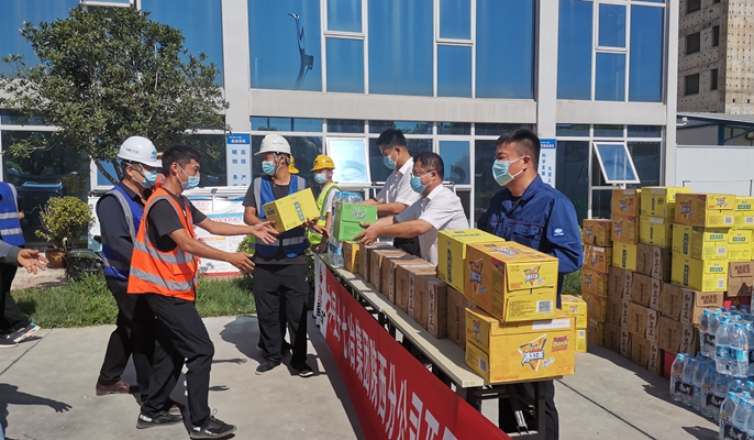 分公司工会主席杨希涛带队前往各项目部,为在高温中坚守一线的管理、作业人员送去西瓜、凉茶、饮料、矿泉水等防暑降温物品与公司工会的关怀慰问。他强调,今年西安夏季气温持续攀升,各项目务必严格落实防暑降温的各项有力举措,科学安排施工时间,同时注意大风、雷电、强降雨等夏季多发的恶劣天气,排除一切隐患,谨防事故发生,持续助力项目安全管理能力提升;当前疫情形势依然严峻,各项目务必做好人员管控,认真开展施工、办公、生活区域的消杀工作,做到疫情防控、安全生产“两手抓、两不误”,为广大工友营造安全健康的工作、生活环境。