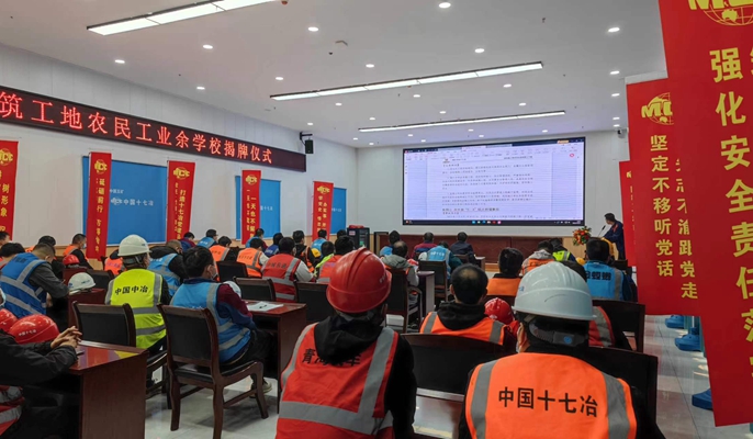 为进一步提升农民工的职业技能及综合知识水平,助力广大工友职业成长和个人发展,10月21日上午,西安市建筑工地农民工业余学校在中国十七冶集团陕西分公司承建的西安交通大学第一附属医院国际陆港医院项目正式揭牌。中国十七冶集团陕西分公司纪委书记、工会主席杨希涛及业主、监理单位代表、项目管理人员、农民工代表等60余人参加了活动。