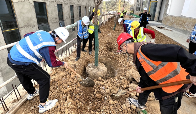 12日上午,汉中市“两院一中心”项目团支部组织全体团员青年开展“植下一棵树,收获万点绿”主题植树活动。项目全体团员青年手持铁锹、提着水桶,秩序井然地来到项目现场绿地,挥锹铲土、扶树正苗、浇水培土,合力栽下一棵棵树苗。大家分工合作,配合默契,扶苗填穴、培土踏实,一丝不苟地完成了一道道工序。栽植的树苗昂然挺立、错落有致,展现着蓬勃生机,为项目增添了一抹绿色。