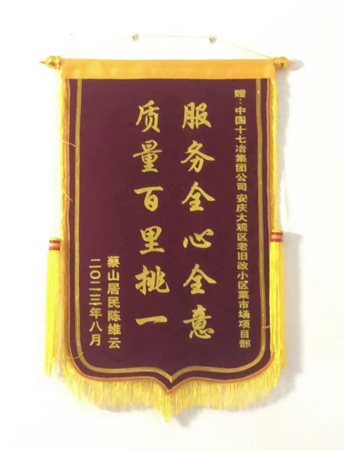 “感谢你们尽职尽责为我们老百姓办实事,改造后菜市场变了样,大家心里都非常高兴。”8月11日,安庆市大观区老旧小区居民陈阿姨为中国十七冶城建分公司项目部送来了写着“服务全心全意,质量百里挑一”的锦旗,感谢他们为工农街菜市场改造做出的贡献。